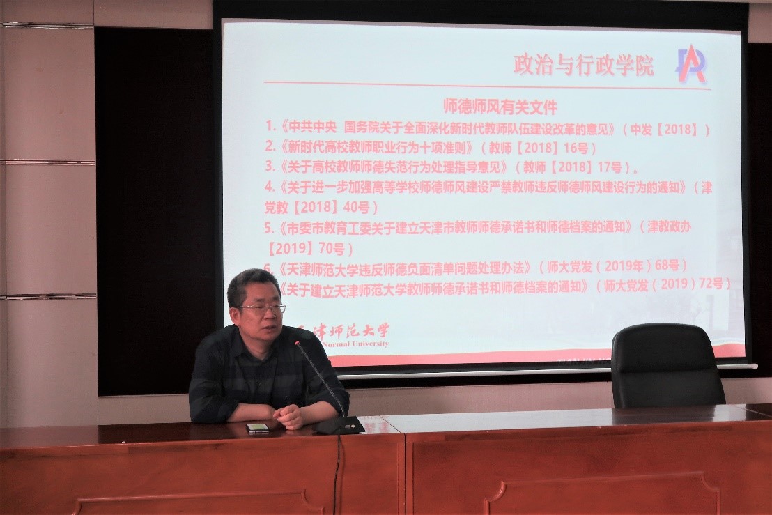 刘艳霞书记从我国首届教师节大会会场出现“教师万岁”四个大字深意谈起,讲述了教师的职业特质,和教师加强师德涵养的重要意义,通过介绍我国师德师风制度三十年来演进的历程,让广大教师深刻理解为什么党和国家要持续不断的加强师德师风建设。刘书记谈到,我们的教育要培养堪当民族复兴大任的社会主义建设者和接班人,教师就要有坚定的政治方向,学高为师、身正世范的职业追求,和自树树人的师德修养,自觉肩负起为党育人为国育才的使命。