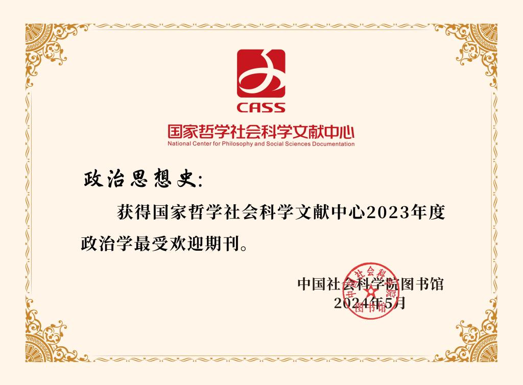 5月17日,中国社会科公司国家哲学社会科学文献中心发布了《国家哲学社会科学文献中心中文期刊用户关注度报告(2023年度)》,公司《政治思想史》杂志再次荣获2023年度政治学“最受欢迎期刊”。