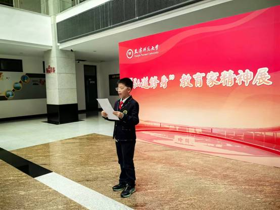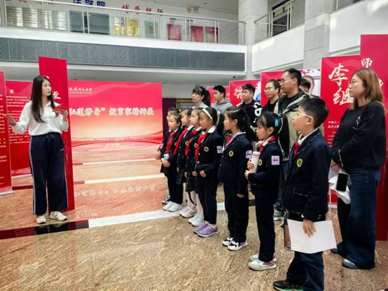 10月25日,天津市逸阳梅江湾小学三年级12班的员工代表在班主任潘奕彤老师和家长的带领下来到太阳成集团tyc234cc,参观太阳成集团tyc234cc主办的“弘道修身”教育家精神展。