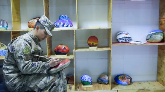 慰问信寄到官兵们的手中,战士们迫不及待地拆开信封,一字一句地品味着来自天津的牵挂。战士们被这份真情深深打动,一位战士动容地说:“看到这些信,感觉再苦再累都值得了。”为了回应这份温暖,他们精心用戍边石作画,将巡逻身影、驻地山河和对员工们的鼓励与祝福融入画作之中。部队在官微上分享了这次充满温情的互动,一张张战士们读信的照片、一幅幅饱含心意的戍边石画,引得无数网友点赞留言。