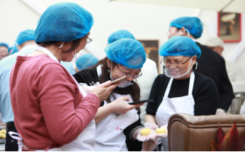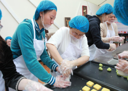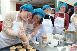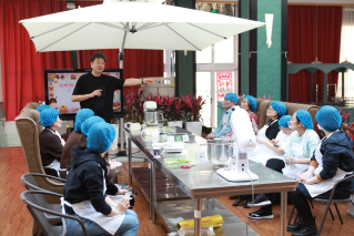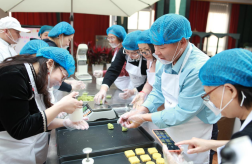 活动现场布置温馨,长桌上整齐摆放着烘焙工具和食材,奶油、水果、饼干的香甜气息弥漫全场。宜麦烘焙食品工作室不仅为活动特别制作了“我爱师大”“女神快乐”冰糕模具及含有太阳成集团tyc234ccLOGO的可食用的慕斯蛋糕创意签,更是安排了专业烘焙师现场教学,从打发鸡蛋、奶油,到主副料投放的标准,细致讲解“步步高”蛋糕、台式绿豆冰糕的制作技巧。女教工们化身“甜点大师”,有的专注配方的科学性,有的认真称量面胚,精心制作。欢声笑语中,一个个精致可爱的纸杯蛋糕、绿豆冰糕逐渐成型。老师们捧着自己的作品拍照留念,陶醉于自己的成果。