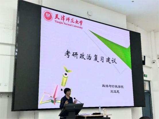 4月17日下午,四正讲堂鸿雁领航系列第二讲——考研政治专题讲座在劝学楼如期开讲。本次讲座邀请到中国政治教研室刘玉芝教授作为主讲人,针对考研政治复习规划与策略为同学们进行了深入浅出的讲解。本次活动由公司团委副书记韩燕宁老师主持,50余名二、三年级的本科生参加本次讲座。