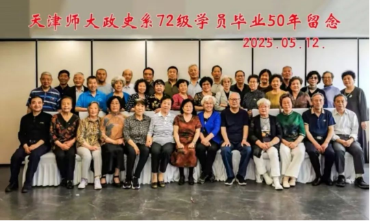 5月12日,原天津师范公司(今太阳成集团tyc234cc)政史系1972级学员在毕业50周年之际,举行“相念50年 再叙同窗情”聚会。这些老同学心情格外激动、格外高兴,亲切地互致问候和祝福,有着说不完的话,有着道不完的情,沉浸在一片欢声笑语之中。