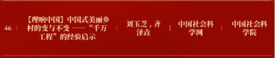 文章指出,作为中国式美丽乡村的典范,“千万工程”推动城乡融合发展的同时,重塑着乡村治理现代化格局和乡风文明。“千万工程”实施20年,带来的是乡村物质生产方式、村民生活方式和精神文化风貌的深刻改变。以“千万工程”引领美丽乡村的深刻改变,最终是为了不变。其一,以人民为中心是贯穿中国特色社会主义事业全局的根本价值,是建设美丽乡村的不变追求。其二,一切从实际出发是党领导中国特色社会主义建设实践的根本遵循。其三,“办好农村的事情,实现乡村振兴,关键在党”,坚持党领导下的乡村治理,初心不改,使命不变,是中国式美丽乡村建设进程的不变优势。千万工程”促进美丽乡村巨变中蕴含的是坚持中国共产党领导的不变优势,是植根于乡土中“全心全意为人民服务”的宗旨和原则。