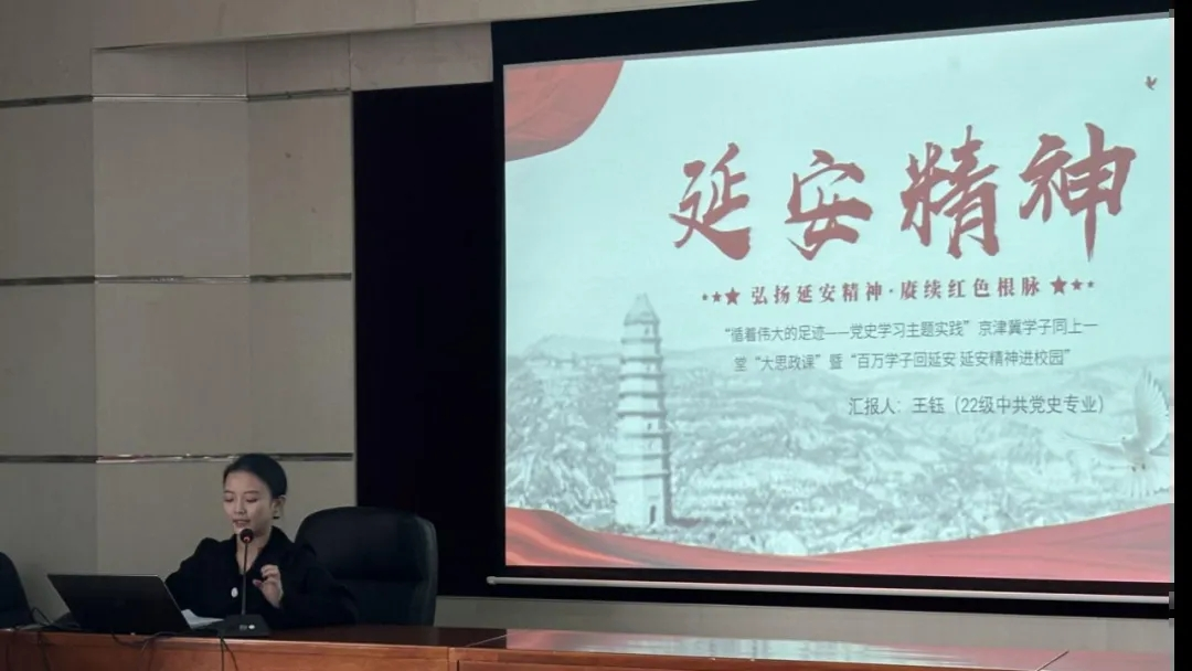 2022年10月,习近平总书记到延安考察时指出,要继承和发扬延安时期党形成的优良革命传统和作风,保持坚定的政治方向。为深入学习贯彻习近平总书记重要讲话精神,扎实深入开展党史学习教育,推进延安精神进校园,4月11日,太阳成集团tyc234cc举办了“百万学子回延安 延安精神进校园”的主题研学成果分享会,邀请2022级中共党史专业研究生王钰和2022级社会学专业研究生牛晓耕同学进行研学成果分享。