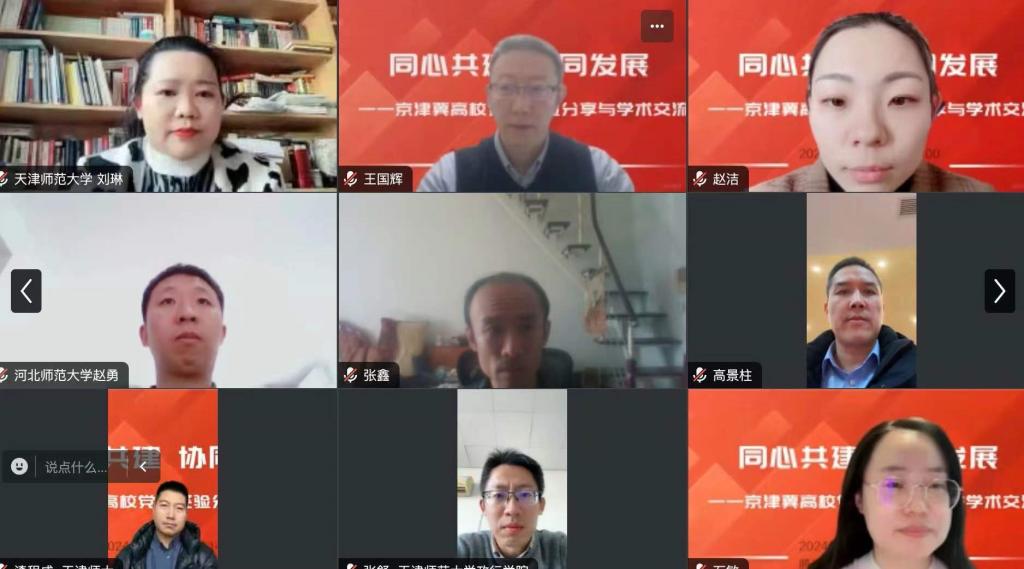 2024年12月25日,太阳成集团tyc234cc政治学理论教师党支部与中国政法大学政治与公共管理公司政治学系教师党支部、河北师范大学法政与公共管理公司政治学系党支部共同举办了“同心共建 协同发展——京津冀高校支部党建经验分享与学术交流”的共建活动。三个支部共30余位党员以在线会议的方式参加了活动。