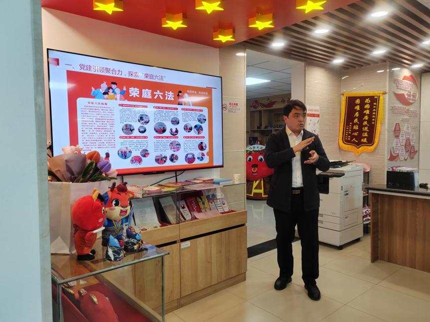 公司考察组首先来到佳和荣庭党群服务中心调研学习,在社区书记、居委会主任门万成的带领下,实地参观了社区居民会客厅、苏伯伯合和社、墨香文创社和“红色工坊”等地,详细了解了“荣庭六法”“抱团养老”“银发志愿队”等特色社区治理模式和工作方法。