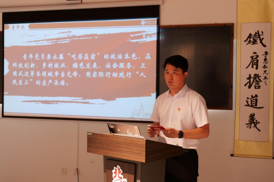 2022级科学社会主义与国际共产主义运动专业研究生刘琪以“铁肩担道义 赤诚映初心”为主题进行微党课展示。她动情讲述了李大钊先生的使命担当与革命精神,号召全体青年党员在人生的新征程上,传承红色基因,担当时代使命,让个人理想与民族复兴同频共振,在新时代的答卷上,写下无愧于党和人民的一笔。