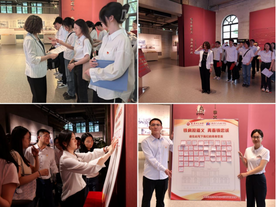 党员们首先参观了《铁肩担道义 热血润山河——李大钊与天津主题陈列展》,在讲解员的带领下,透过复原的书斋场景与李大钊使用过的讲义等文物,深入了解李大钊在天津早期革命运动中的历史贡献,深刻感受学堂一砖一瓦镌刻的历史印记,系统学习李大钊的革命思想、崇高精神和伟大人格。四名员工党员深情朗诵了《青春》,铿锵有力的声音传递出新时代青年的责任与担当。