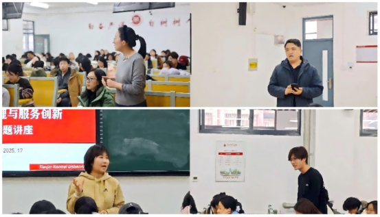 在交流互动环节,现场气氛热烈。师生们踊跃提问,围绕社区治理中的难点及创新方法推广等问题与两位书记展开深入探讨。两位书记结合自身经验,逐一给予细致解答。为师生上了一堂生动的“实践教学课”。