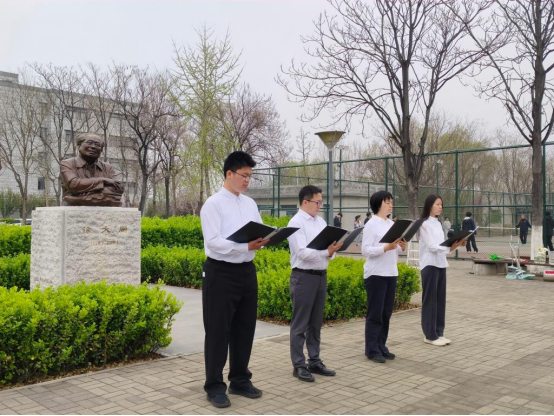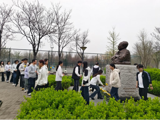 青年师生合诵诗篇,以青春之声传承先生风骨、许下强国誓言。师生们擦拭铜像、敬献素菊、鞠躬致意,以朴素仪式表达崇高敬意。