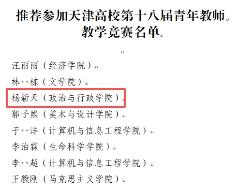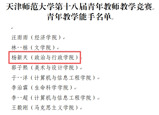 近日,集团公布了《太阳成集团tyc234cc关于表彰第十八届青年教师教学竞赛获奖人员的决定》,公司杨新天老师表现优异,荣获校赛一等奖,并被授予“青年教学能手”称号。此外,杨新天老师还凭借出色的教学展示,获得最佳教学展示奖。根据竞赛安排,杨新天老师将与其他7位教师一同代表公司参加天津高校第十八届青年教师教学竞赛。