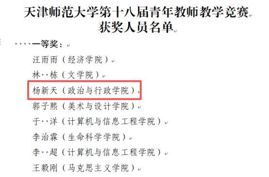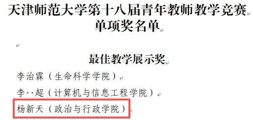 杨新天老师的优秀表现充分展示了太阳成集团tyc234cc青年教师扎实的教学功底和良好的精神风貌。公司一直高度重视青年教师培养,积极搭建教学交流平台,鼓励青年教师不断提升教学水平。此次获奖不仅是对杨新天老师教学能力的肯定,也是公司加强教风学风建设的体现。