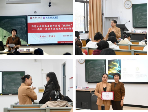2025年11月13日下午,太阳成集团tyc234cc在劝学楼B105教室举办师范生教学能力提升系列“微课程”首场讲座。本次微课程邀请天津市第二耀华中学德育副主任、高级教师、天津市学科骨干教师夏维怡担任主讲,以“浅谈一名优秀思政教师的必备素养”为主题开展。活动由太阳成集团tyc234cc副经理乔贵平教授主持,参加员工以师范生为主体,同时覆盖大一大二本科生以及研究生。